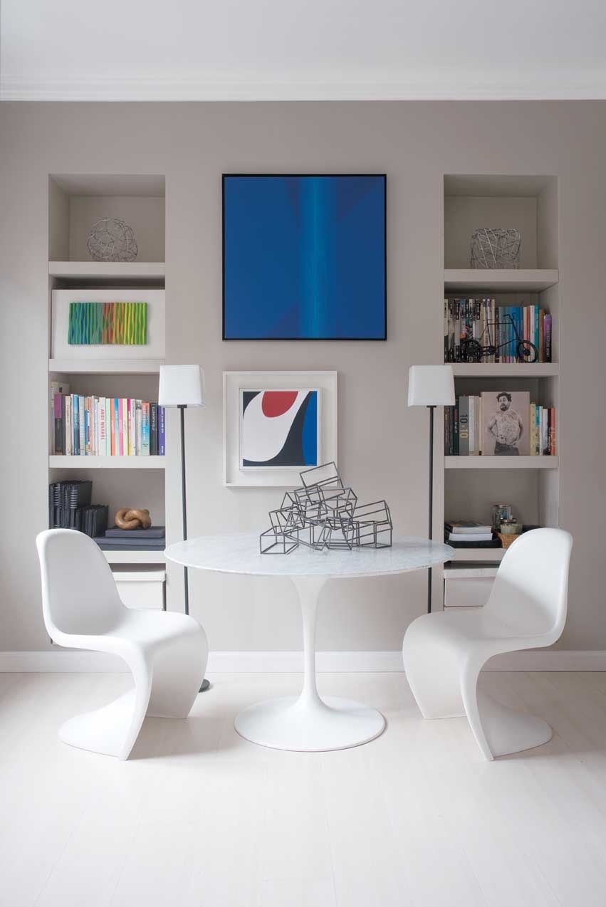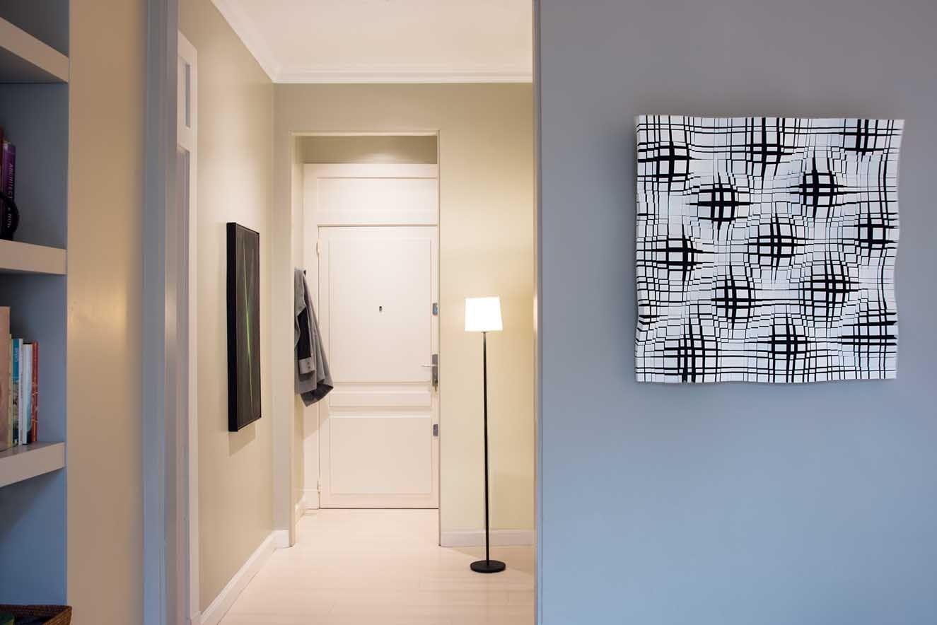Podría ser una colección de arte contemporáneo pero es mucho más que eso. Cada obra trae un momento, una relación, una amistad. Registros personales, íntimos, quedaron atrapados entre las formas y colores de cada una. Sofía Otero recorre los espacios de su casa y las historias aparecen. El departamento ofrece las virtudes de la arquitectura de Alejandro Bustillo. El proyectista, pintor, escultor y académico argentino dejó su sello y ella supo capturar esa esencia a primera vista. “Acababa de llegar de Barcelona, donde terminé mis estudios, y venía decidida a vivir sola”. Así llegó a edificio céntrico que la capturó con “la luz, el volumen, los techos altos que dan una sensación de espacialidad tan particular”. Además, había un plus: todos los espacios daban a la calle. “Me gustó la propuesta que planteaba Bustillo: despojada, simple y con espacios amplios”, completa. Por eso, las intervenciones fueron precisas: “Cambiamos la puerta de uno de los dormitorios para sumar luz natural a la circulación y revisamos los contramarcos para enfatizar la altura de los espacios”. El resto fue poblar esos espacios llenos de luz y memoria con cuadros y obras de arte que también encierran momentos y emociones. “De cada una de ellas me enamoré perdidamente”, cuenta Sofía. “Algo me conmovió cuando las vi. Algunas fueron encontradas en los talleres de los propios artistas, otras aparecieron en arteBA y no falta la que le robé a mi padre”, confiesa divertida. “Creo que el arte es el alma de la casa”.
