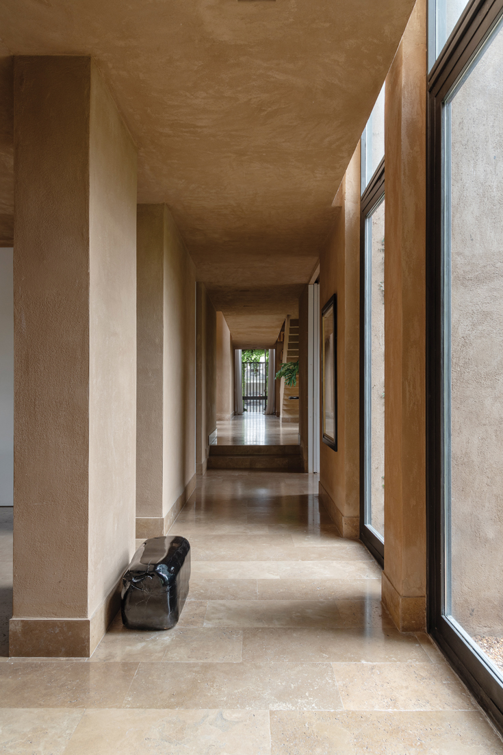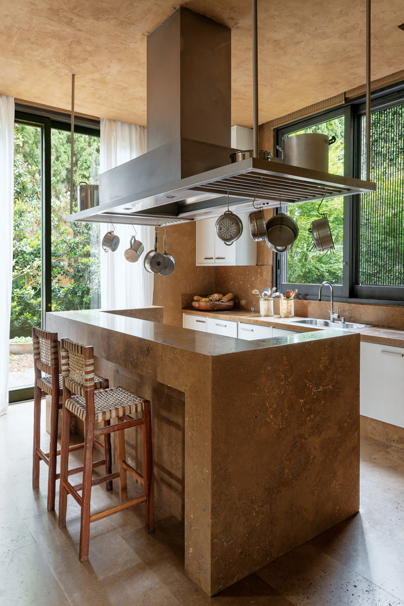 La diseñadora tucumana Popi López de Zavalía no dudó un segundo. Ni bien conoció la obra del recordado arquitecto Pablo Sánchez Elía, se preparó para tomar un avión hacia Buenos Aires. Llevaba consigo un board con planos, fotos y unas cuantas ideas claras sobre lo que quería para su futura vivienda familiar en un lote de características inmejorables de la localidad de Yerba Buena. En el primer encuentro quedó claro que a los dos los unía el gusto por el trabajo artesanal y las construcciones pensadas para ser vividas a lo largo de los años. En medio de la conversación, él ensayó un bosquejo a mano alzada en el que ella vio todo lo que esperaba y comenzaron a trabajar juntos. El programa se desarrolló en dos niveles: en la planta baja, la cocina, el comedor y el living están alejados del acceso para resguardar la privacidad. Estos ambientes miran hacia una sucesión de patios a través de aberturas de doble altura y se conectan con la galería o el jardín. Pura luz y espacialidad. El piso superior se destinó a los dormitorios. La idea de una caja despojada pero sin resignar calidez se potencia con los materiales puros que son el sello de Sánchez Elía. El revestimiento de cemento texturado en tono tierra y los pisos de travertino noce generan continuidad y una identidad clara. Los vaivenes de la vida quisieron que esta obra se prolongara desde 2011 hasta fines de 2019. Popi atesora un mensaje de audio que recibió de Sánchez Elía durante los días de la mudanza. “Felicidades, buenos augurios, buena energía. Ahora hay que ir poseyendo esa casa… sostenerla”, le deseaba. El resultado del camino que siguió la diseñadora es un lugar que vibra con el amor de sus hijos y se comparte con familia y amigos.