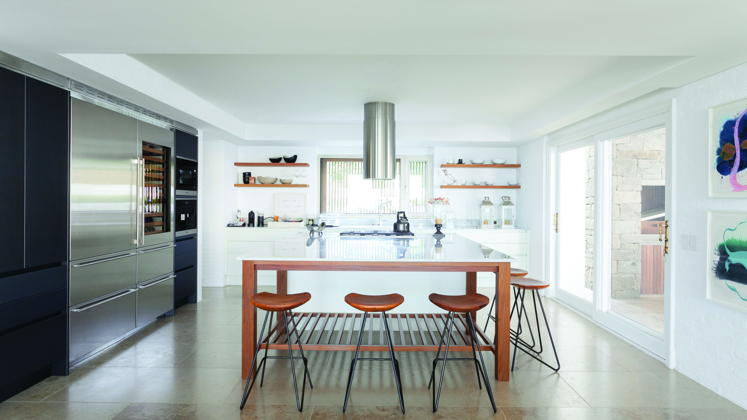 En un entorno determinante y protagónico, el límite entre el adentro y el afuera debía ser flexible. “Aquí se regula con la apertura total de las carpinterías, generando grandes espacios de uso en verano, cuando la casa es ocupada para fiestas”.