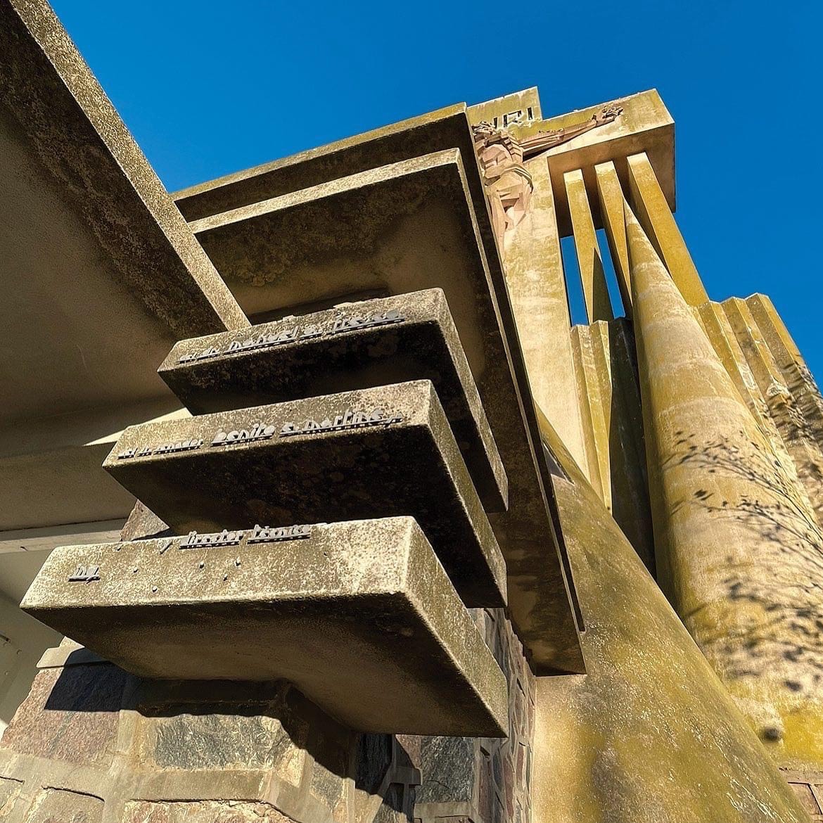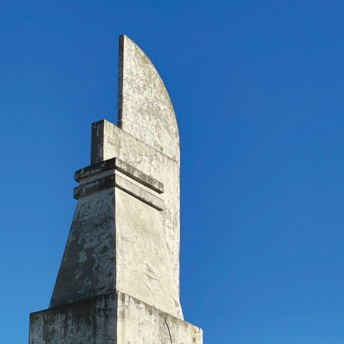 Como en un roadmovie, salí a la ruta para seguir los pasos de Francisco Salamone, ingeniero siciliano formado en la escuela Otto Krause. La bruma y la ruta mojada fueron un escenario de película para este viaje al interior de la provincia de Buenos Aires que comenzó en Azul, Rauch, Balcarce, Lobería, Laprida y siguió por Coronel Pringles, Saldungaray, Carhué, Guaminí, Pellegrini y Alberdi. Al llegar al primer punto, el cementerio de la localidad de Azul, la visión era de un dramatismo total: un ángel se erguía como guardián de los difuntos, con una impronta imponente y majestuosa que no deja duda de la intención de esta obra anclada en el medio de la planicie.