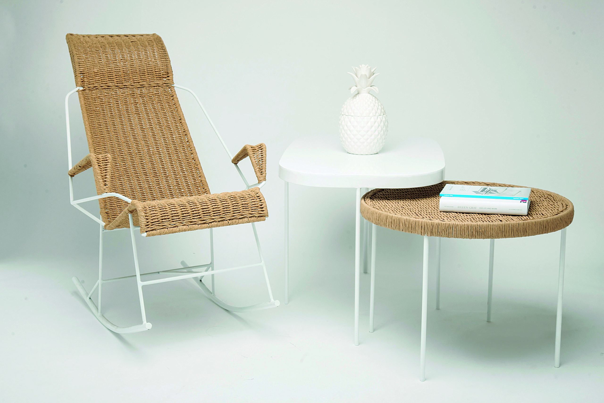 Fiel seguidora de Patricia Urquiola y Jaime Hayón, Bruna mira mucho diseño europeo pero lleva Sudamérica en su sangre por lo que sus piezas y su estilo tienen la combinación justa entre lo artesanal, las texturas y los materiales de acá, con las líneas y los procesos de producción más industrializados. “No me interesa la literalidad de la artesanía pero sí me atrae mucho su forma, sus materiales y su cultura”, señala. Así, su colección Ayapel está inspirada en los tejidos y las sillas del Caribe colombiano, con formas arriesgadas y un aire bien fresco, bien de mar, que se materializa en hierro para la estructura y tejido en fibra de papel para la base. Mientras que su línea de mesas Persé es más europea, con líneas minimalistas y materiales más fríos. Además, suma una línea de mesas ratonas o sidetables con tapas redondas de mármol y base de madera que recuerdan a los antiguos bancos de piano regulables.