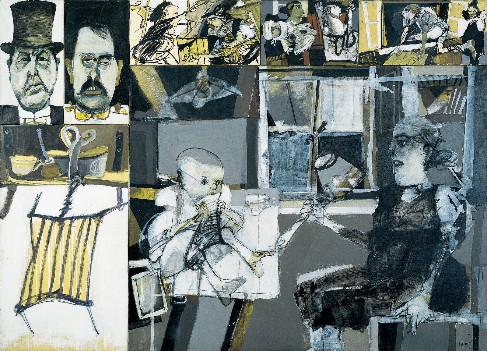 Tras una importante remodelación para sumar salas de Arte Prehispánico, el Museo Nacional de Bellas Artes rinde homenaje al artista Carlos Alonso en el pabellón de exposiciones temporarias. Los investigadores María Florencia Galesio y Pablo De Monte organizaron Pintura y memoria alrededor de dos ejes. En Pintura y tradición, el artista celebra a sus maestros, como Lino E. Spilimbergo -a quien le dedica varias obras, entre ellas L.E.S., ca 1967; y Ernesto de la Cárcova, al citar su obra Sin pan y sin trabajo en 1966-, y a grandes artistas de la historia del arte universal; comprende los collages de la serie Blanco y Negro. En Realidad y memoria, con un tono expresionista, capta el horror y la violencia. Son más de sesenta pinturas, dibujos y collages con acento político que repasan la historia reciente, creadas entre 1963 y 1989. “Historia, memoria y realidad encuentran en la obra de Alonso una síntesis y una mirada crítica, potenciada por una imagen de gran expresividad”, dicen los curadores del Bellas Artes.