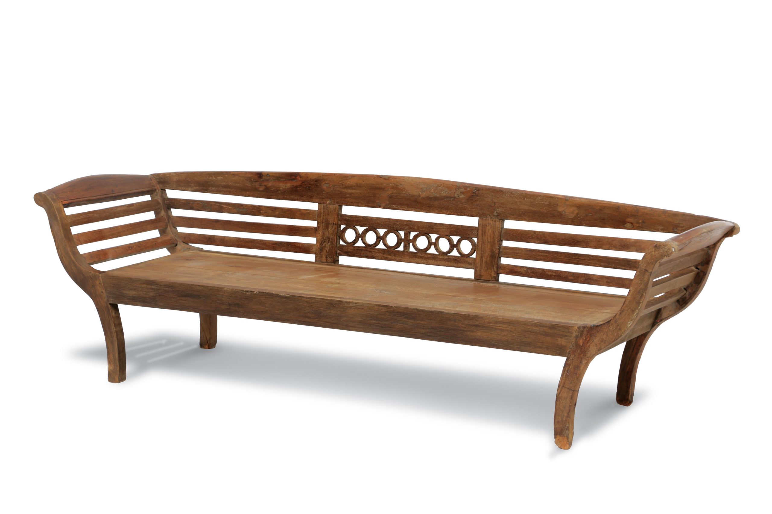 Banqueta de madera teca tallado a mano, origen Isla de Java.