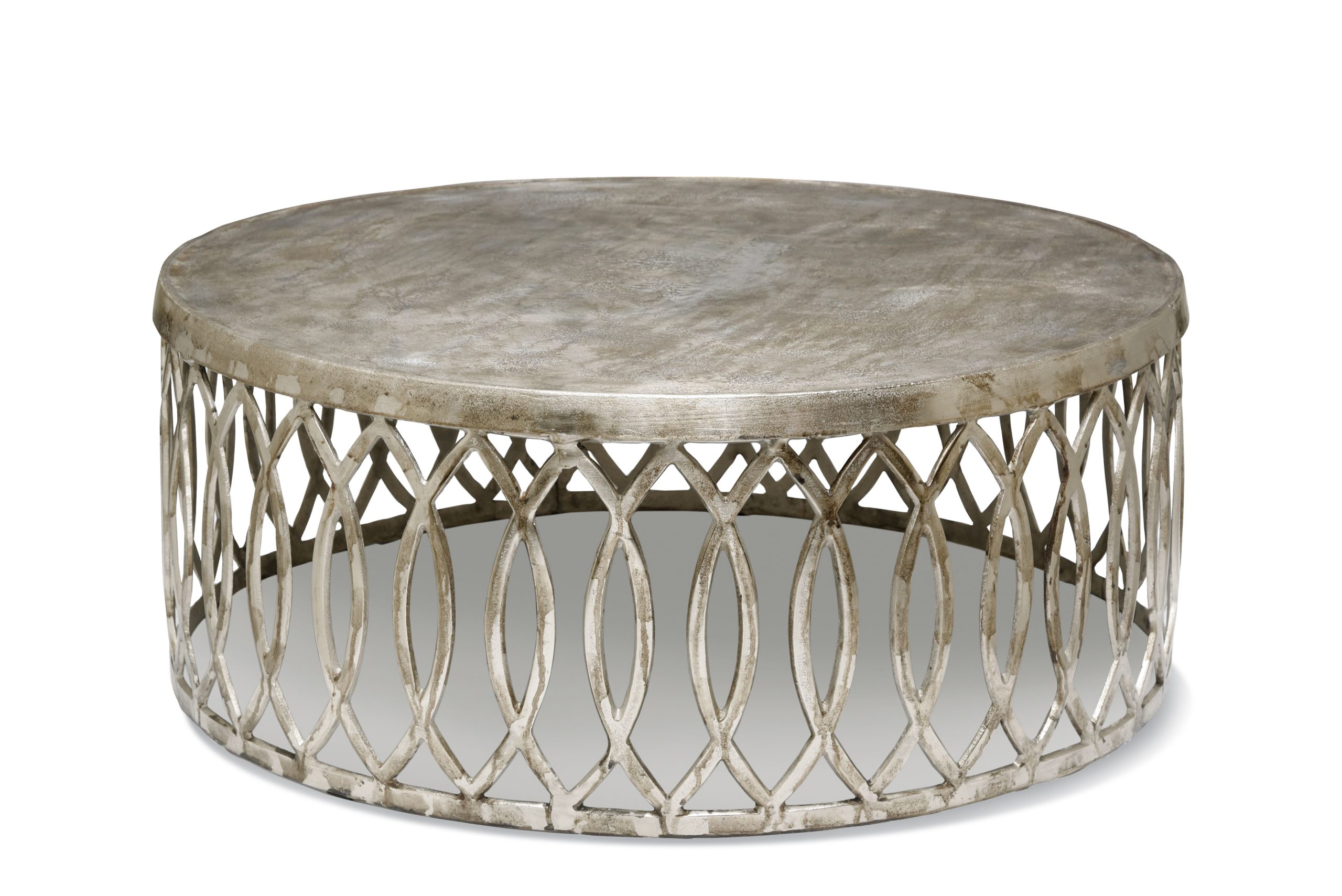 Mesa baja Laponia, de aluminio, terminación en níquel vintage y realizada a mano, origen India.