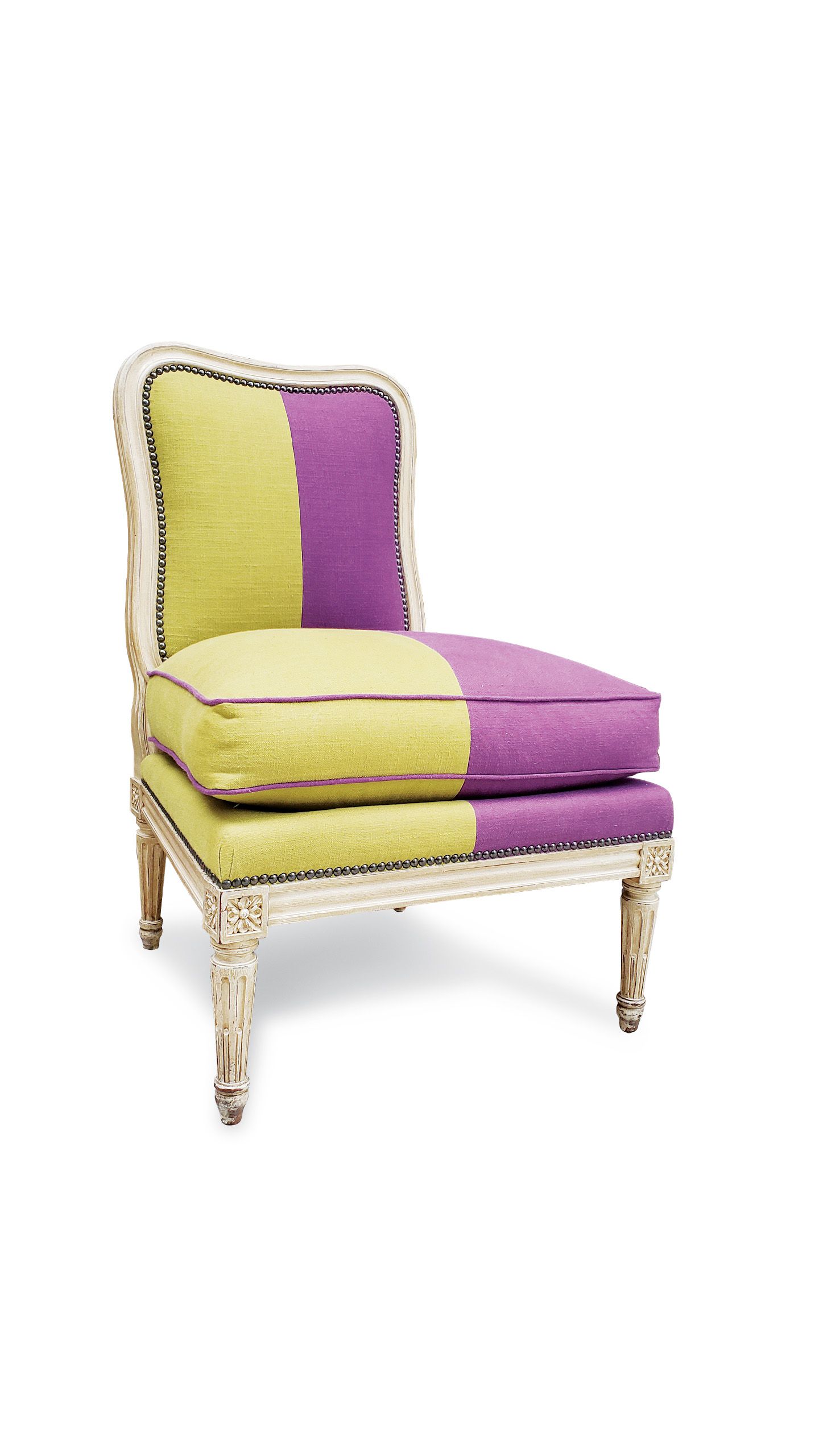 2. Silla Anna, tapizada en lino tramado.