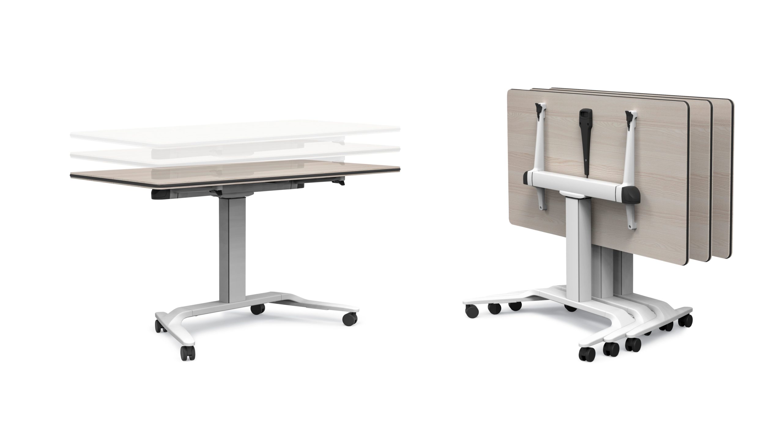 Mesa Talent, es un programa de mesas de ACTIU diseñado por Alegre Design desplazable, de rápido almacenaje, cómodo y elevable. Acabados disponibles: blanco, acacia y castaño, en varias medidas.