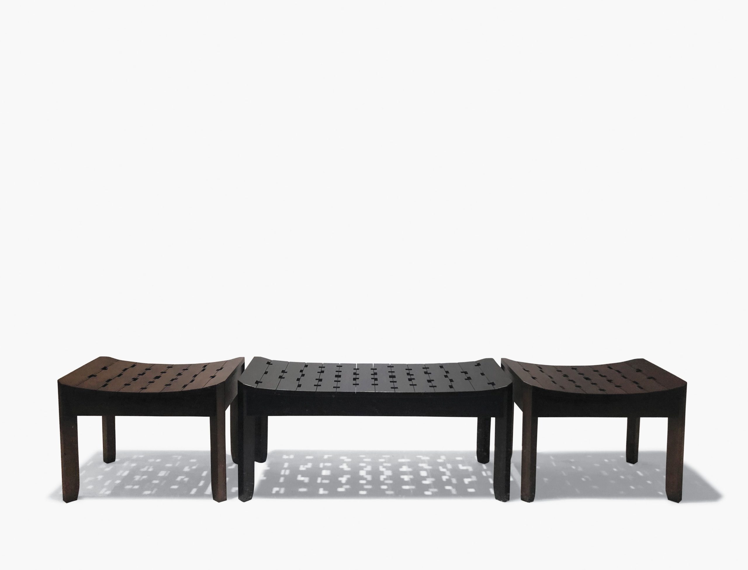 1. Banqueta/s Caladas, madera lustrada con calados en espejo (0.60 x 0.40 y 1.00 x 0.40)