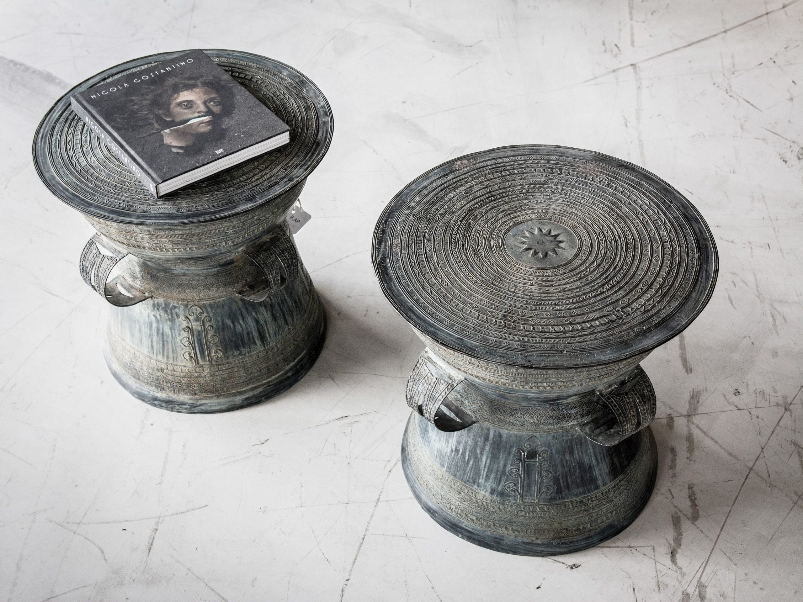 1. Bancos de chapa repujada con labrados antiguos, origen India.