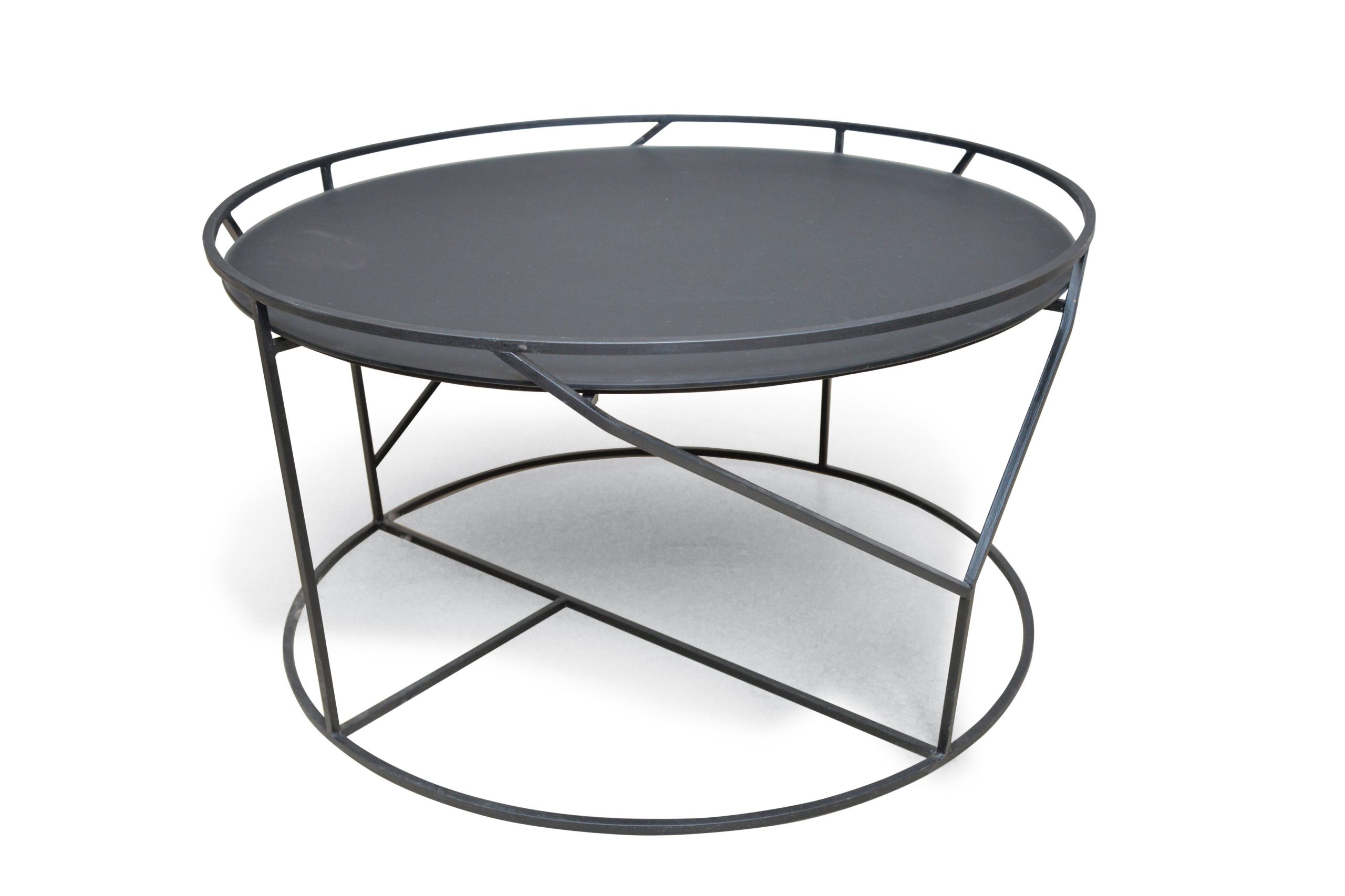 Mesas bajas Geo, base de hierro, terminación laca negra, tapa de vidrio negro (opción pulido y mate).