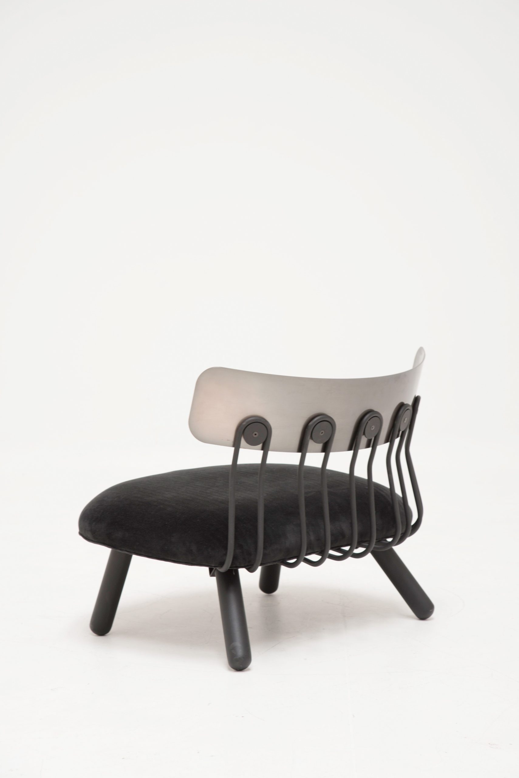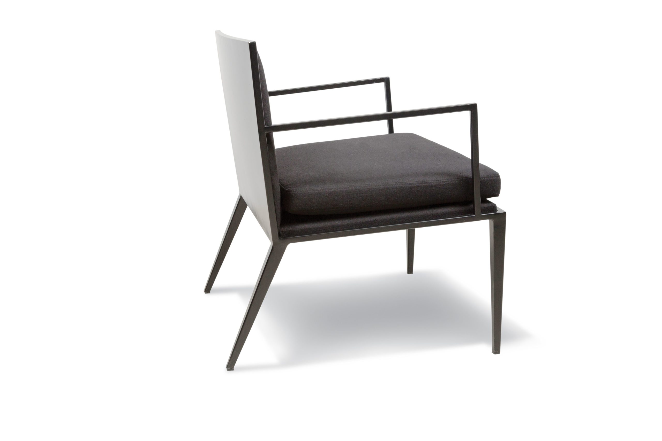 Poltrona Parker con estructura metálica en negro semimate con apoyabrazos. Tapizada en lino negro (0.63 x 0.60 x 0.74h). Colección Black is Black 2018