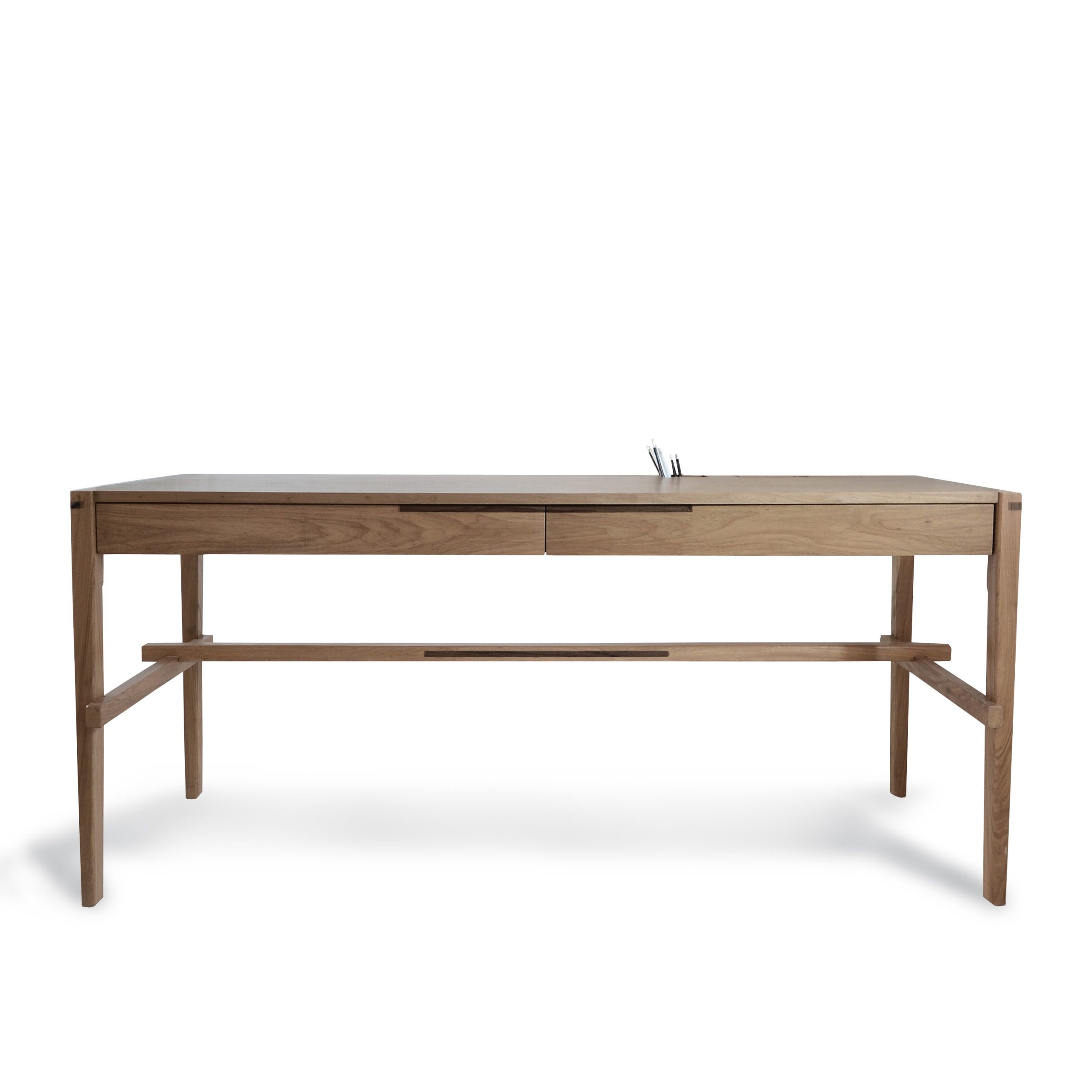 Escritorio Samurai, fabricado en madera petiribí maciza y laminada, con vínculos y detalles en guaiyubirá, rasgos del trabajo en madera tradicional.