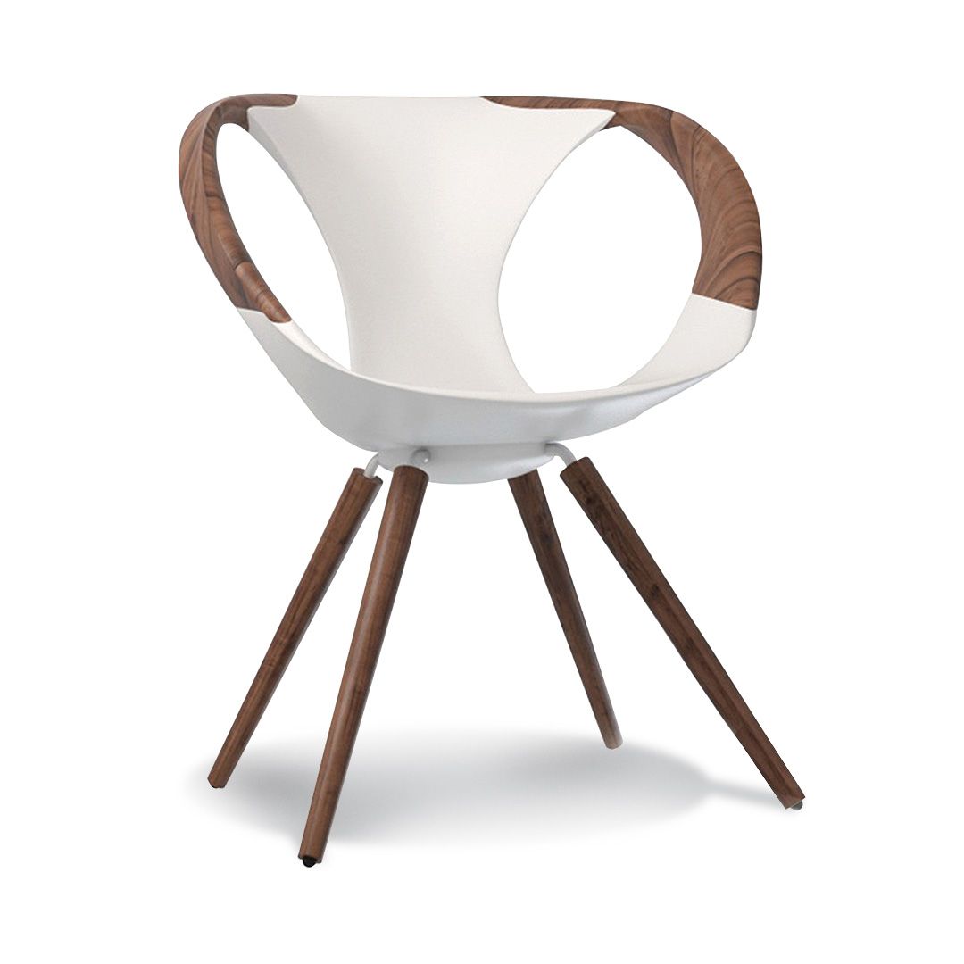 3. Silla de comedor con base en madera nogal y asiento fijo soft ecológico, origen Italia