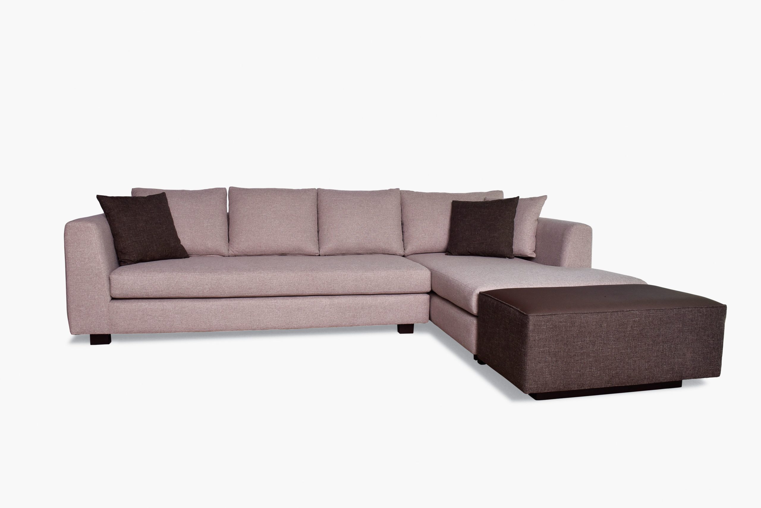 3. Esquinero Chiara, tapizado en lino tramado y con pouf.