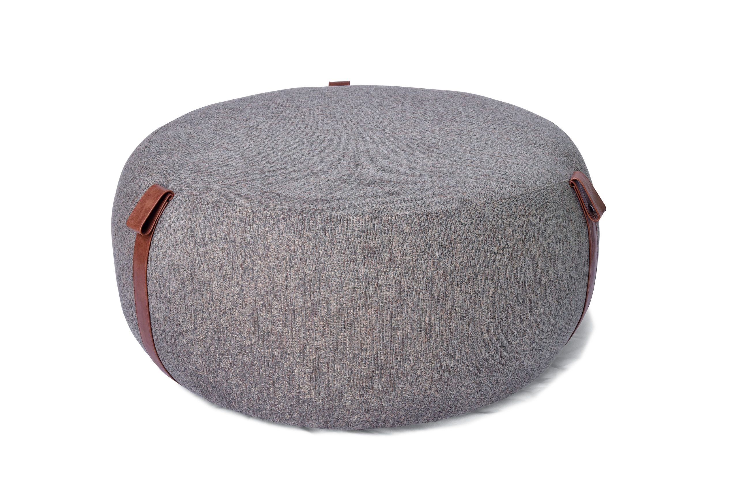 1. Pouf Aero, realizado en tela con tiras en cuero.