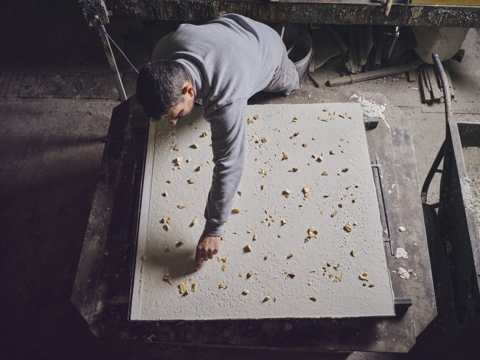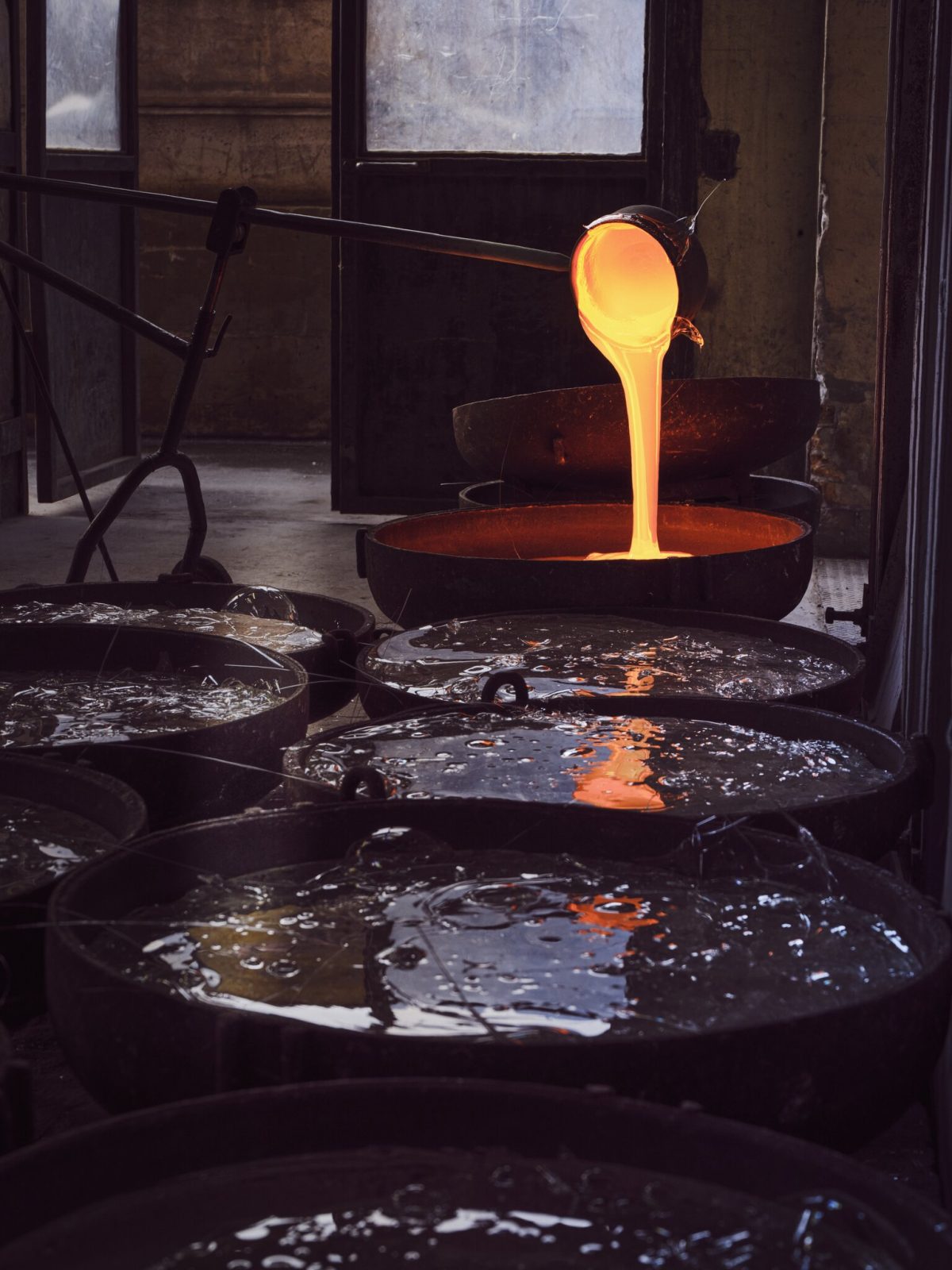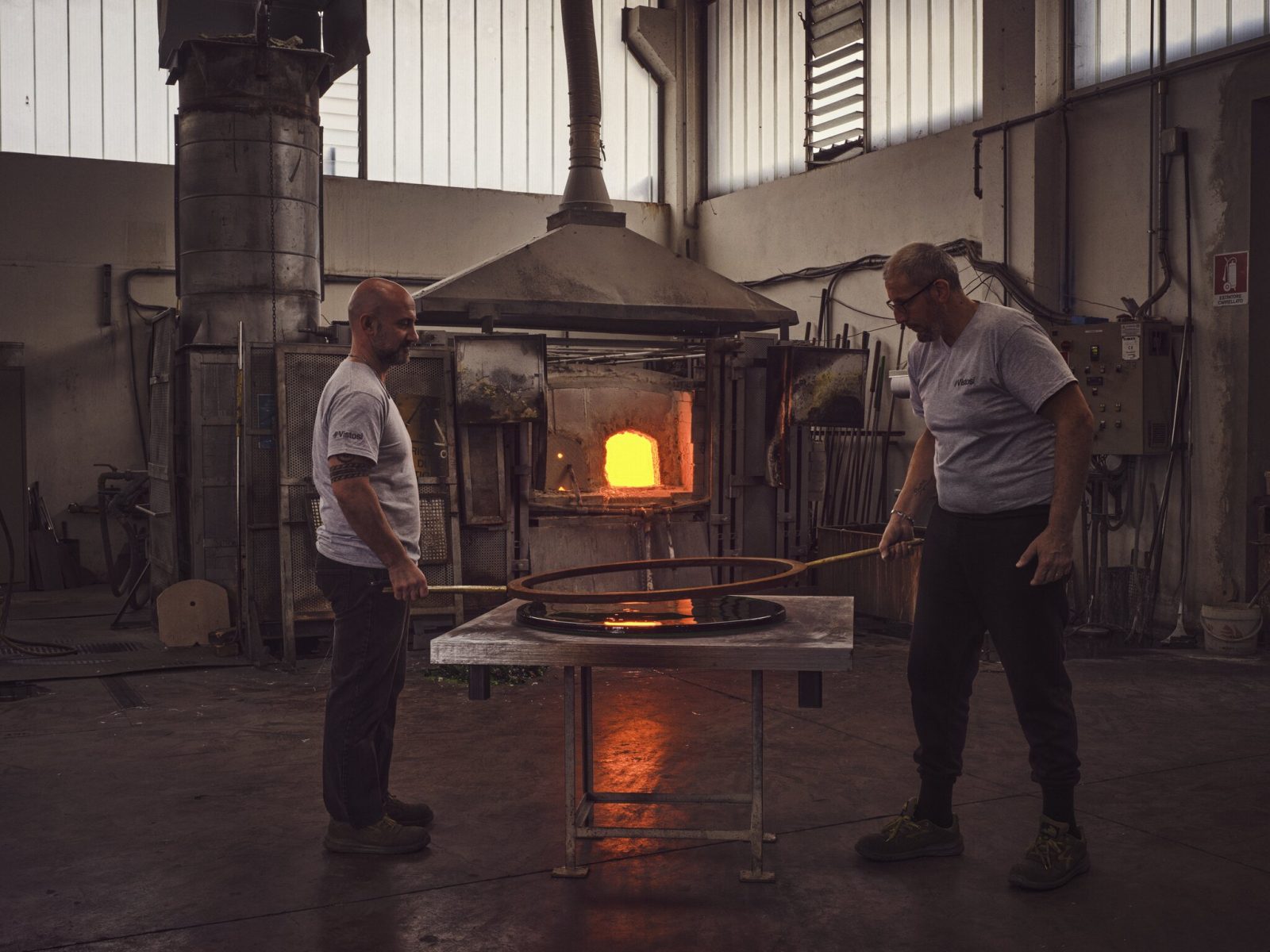 La construcción funcionó como un laboratorio de inteligencia colectiva, donde la precisión de la marca dialogó con la memoria de los oficios y la urgencia de repensar los recursos. Ese concepto se aplicó en la fachada, construida con vigas de madera reutilizadas, que evocaban el bisel estriado de los relojes más emblemáticos de la casa. En el interior, el techo, realizado por vidrieros de Murano generaba un juego de luces que iba cambiando a lo largo del día, mientras que el suelo de terrazo incorporaba fragmentos de vidrio reciclado tipo Cottisso, transformando residuos en una superficie resistente y refinada.