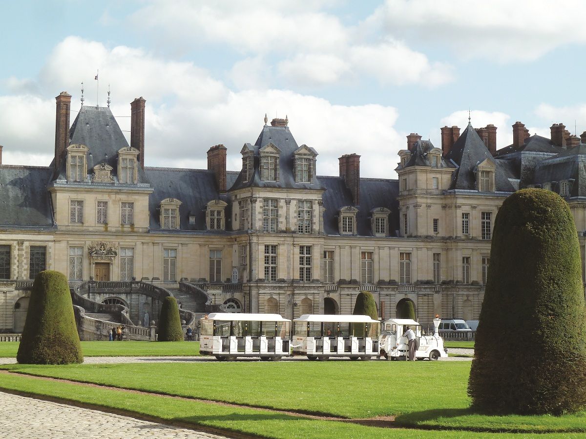 El salón oval de Vaux Le Vicomte, palacio donde se filmaron, entre otras muchas películas, El Hombre de la Máscara de Hierro con Leo Di Caprio y María Antonieta de Sofía Coppola.Mini tren para recorrer los jardines de Fontainebleau: el más grande tiene 11 hectáreas.